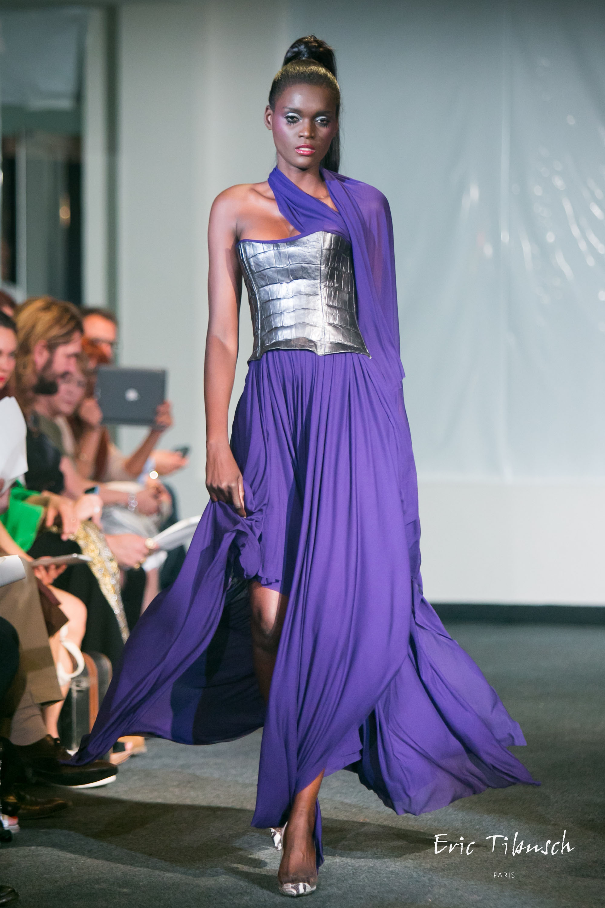 Un jeune créateur français à découvrir ou à redécouvrir, Eric Tibusch. Une collection 2013-2014 très élaborée pour hommes et femmes. A noter la participation de Claude Montana et une robe de mariée très classe tout en dentelle.