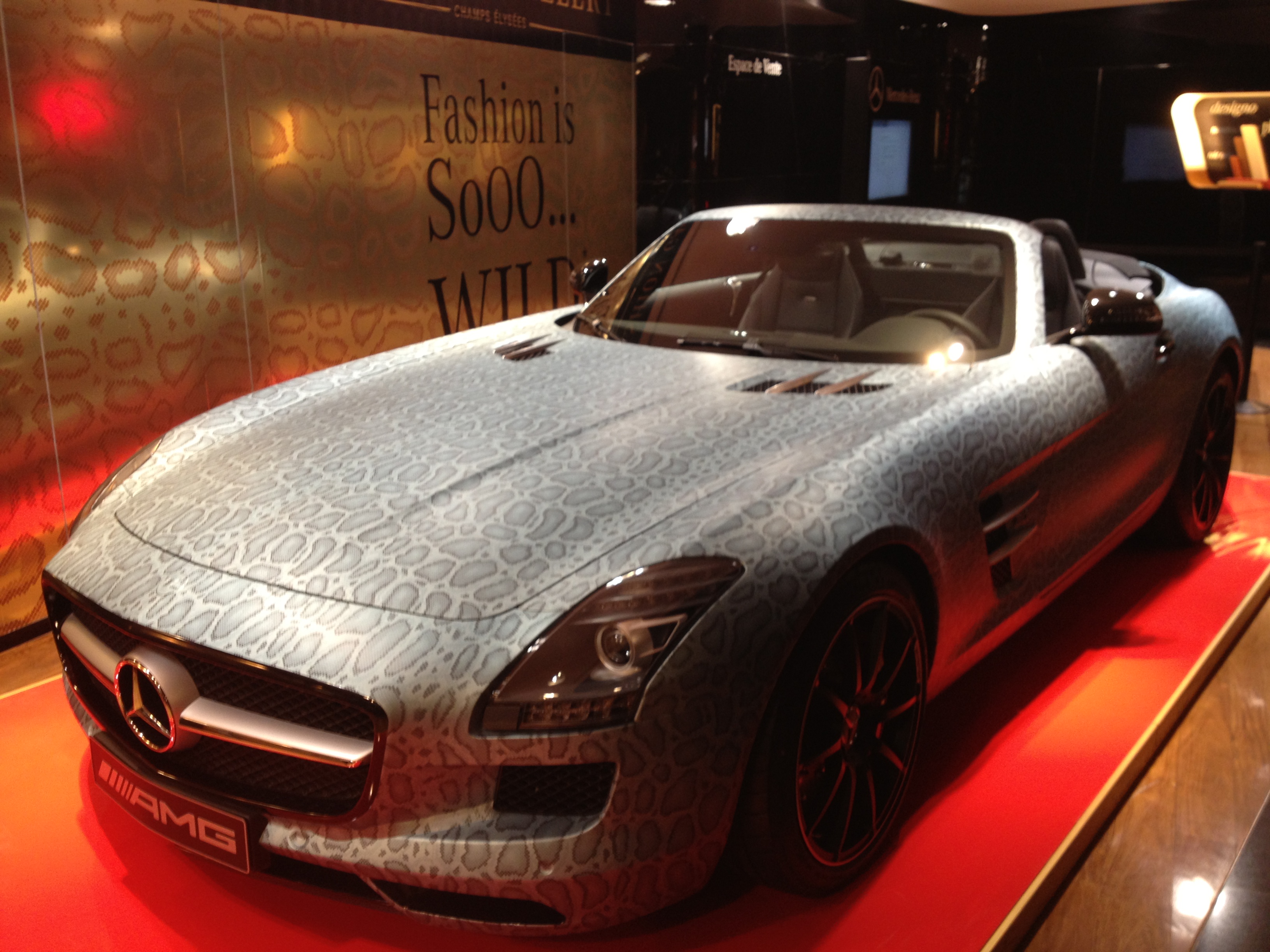 « Vitrine internationale, la Mercedes-Benz Gallery expose au 118 de l’avenue des Champs-Elysées, sur une surface de 500 m², l’essence même de la marque. Dans ce nouvel espace moderne et chaleureux, vous pourrez découvrir les modèles les plus exclusifs de la marque et profiter régulièrement d’expositions temporaires de véhicules d’exception. Chaque année, ce lieu unique accueille ainsi plus de deux millions de visiteurs : amoureux de la marque, passionnés d’innovations, de compétition ou amateurs de voitures anciennes…voire les quatre à la fois ! »