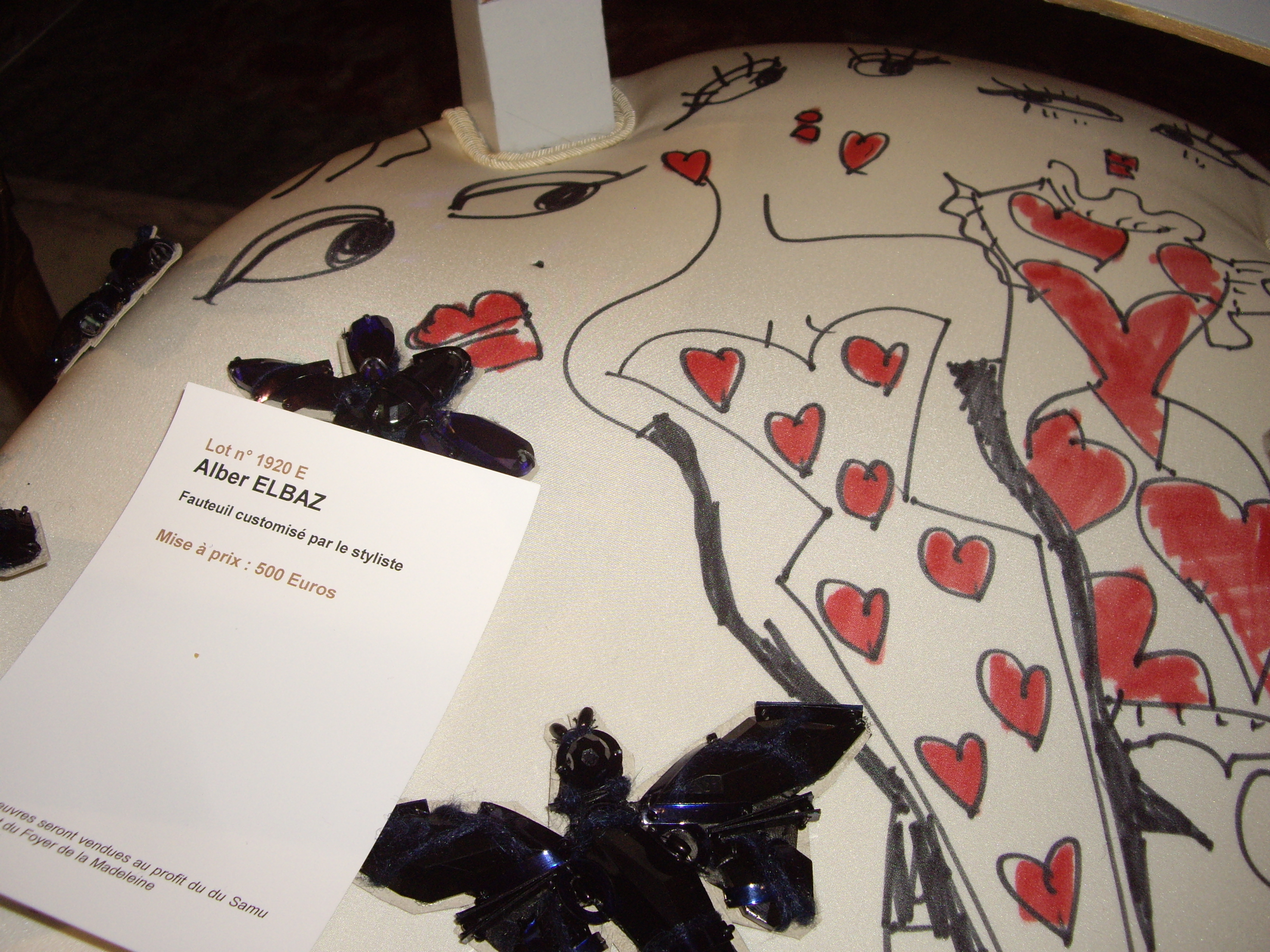 Voici un échantillon du mobilier avant re-décoration et des chaises vendues aux enchères créées par de nombreux artistes, comme Andrew GN, Victoria Wilmotte, Aline d’Aman, Alexis Mabille, Alber Elbaz et bien d’autres.