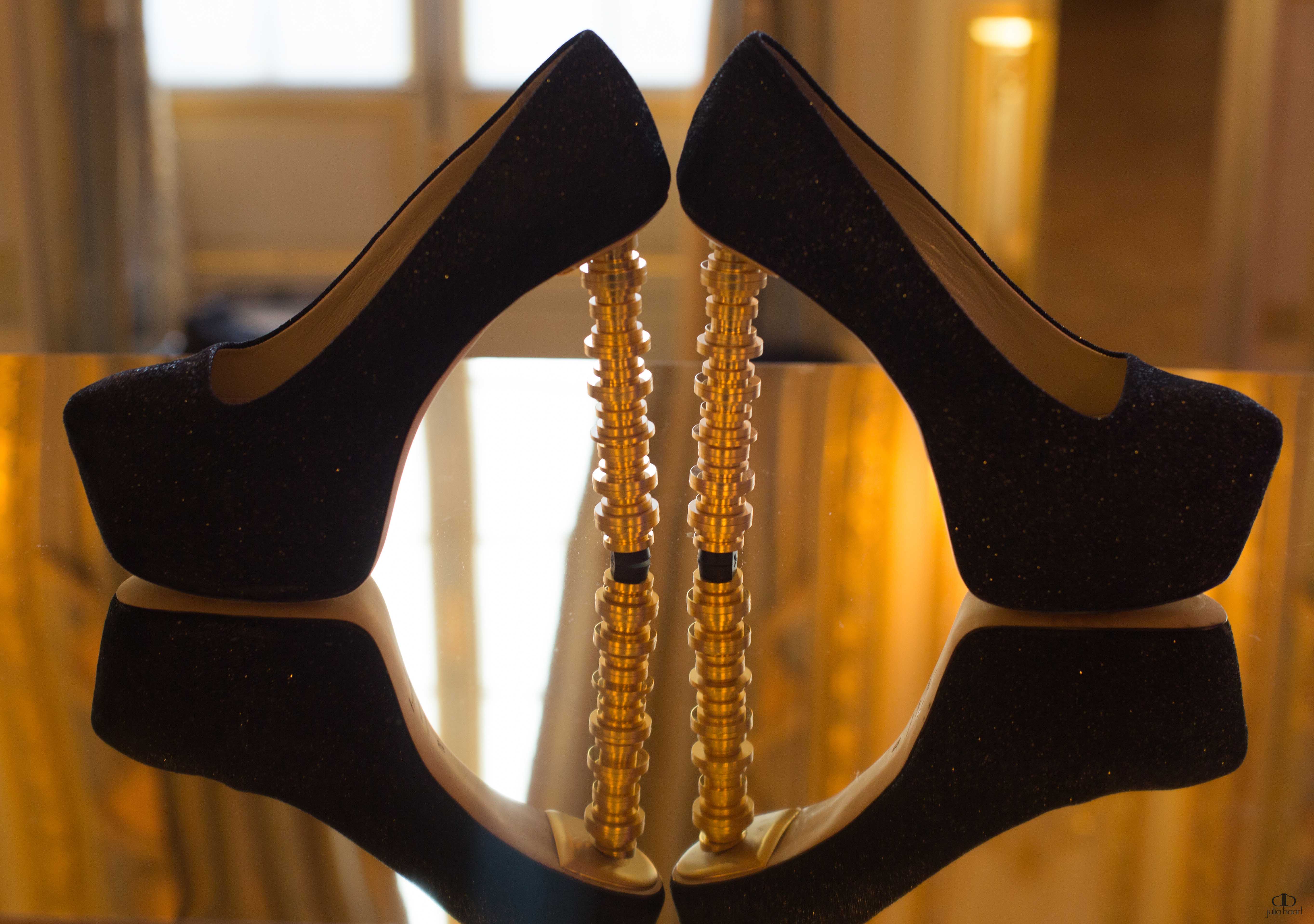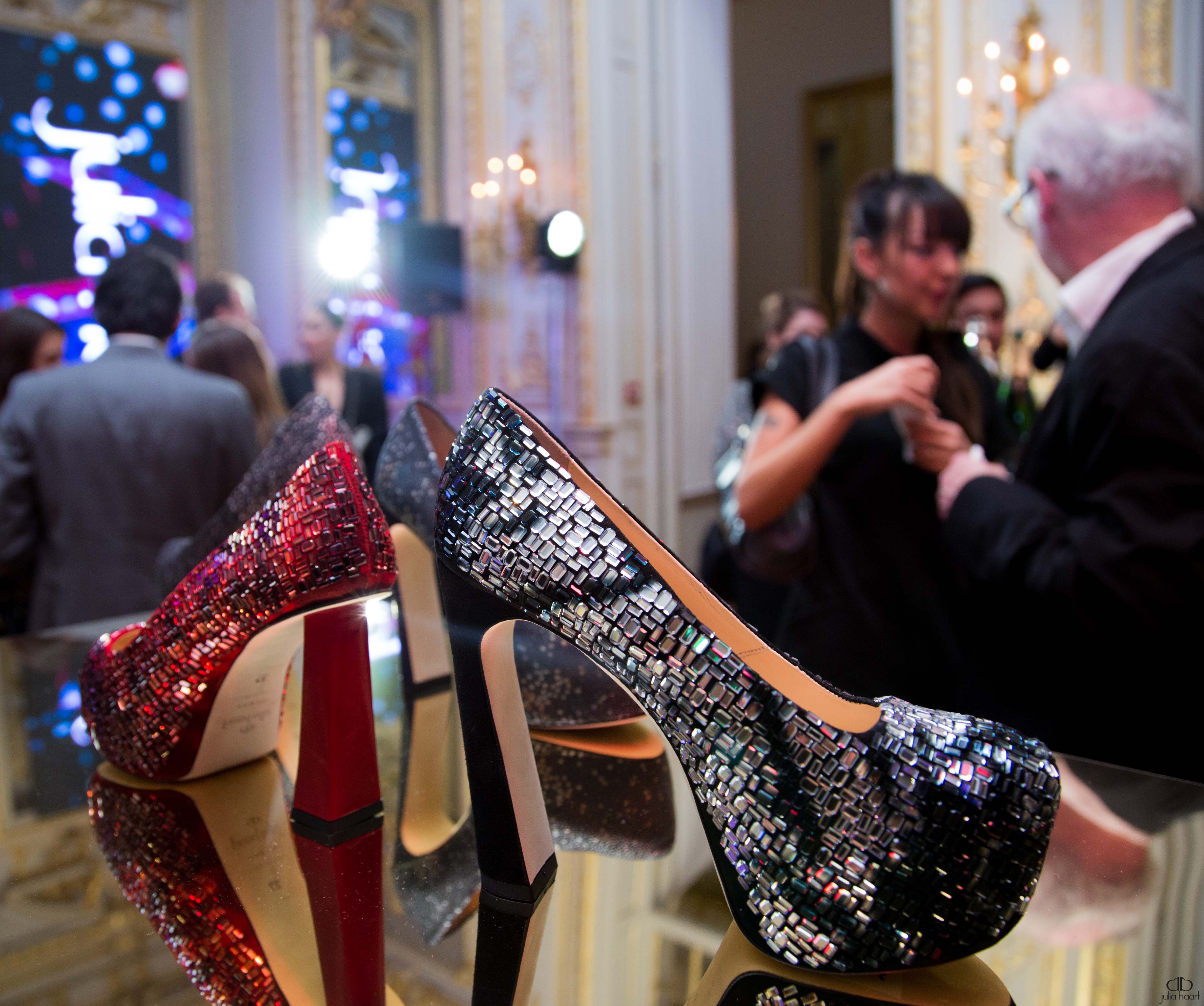 Présentation de la 1ère collection de chaussures et bottes de Julia Haart, américaine, dans les superbes salons de l’Hôtel Park Hyatt Paris-Vendôme. Luxe, chic et glamour, ces chaussures sont très agréables à porter malgré la hauteur des talons. Talons sculptés ou dorés.